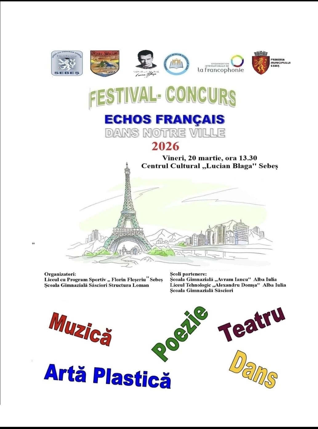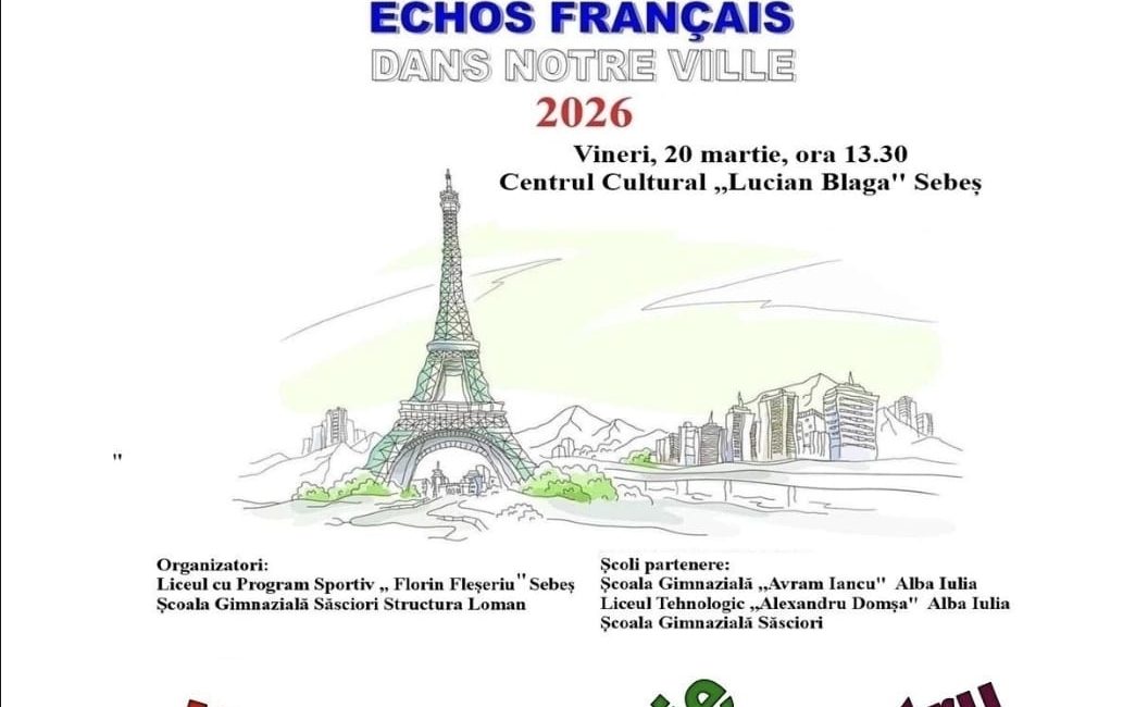 Concursul „Echos français dans notre ville” va avea loc mâine, 20 martie 2026, pe scena Centrului Cultural „Lucian Blaga” Sebeș. Acesta va aduce împreună elevi, profesori și comunitatea locală pentru a celebra farmecul limbii franceze și bogăția culturii francofone. Inspirat de pasiunea copiilor pentru artă, muzică și teatru, proiectul propune o întâlnire vie între limbă și expresie artistică, într-un cadru modern și deschis colaborării.