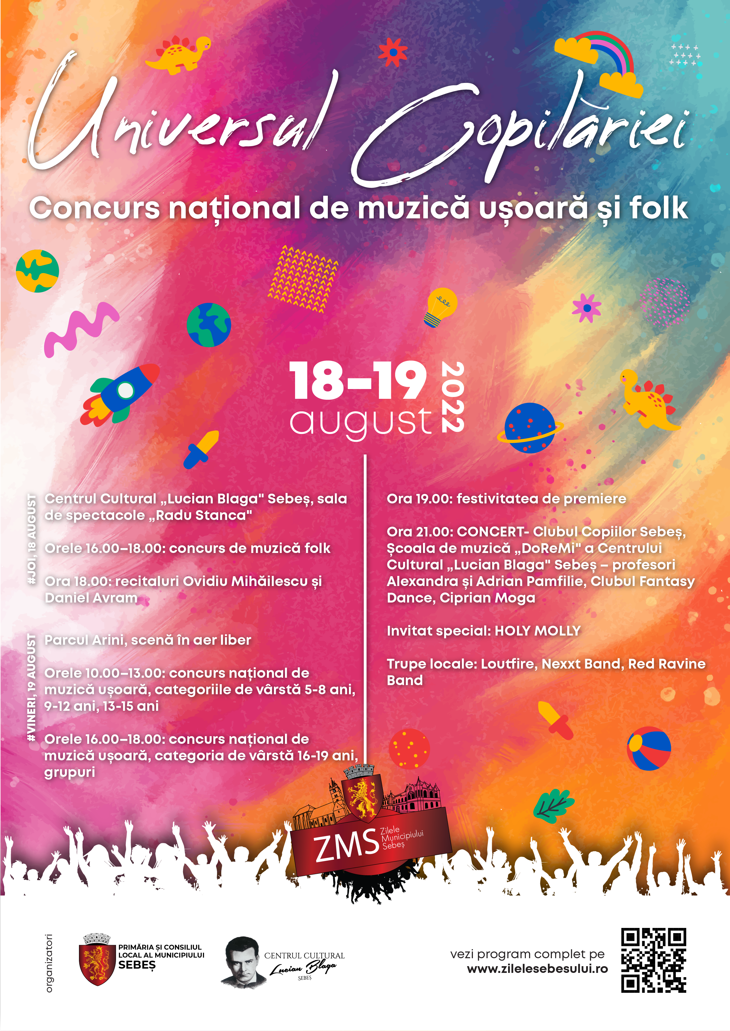 Atmosfera de festival este deschisă pe note muzicale de cei mai mici artiști, participanți la Concursul național de muzică ușoară și folk – „Universul Copilăriei”, pe care municipiul Sebeș are plăcerea să îl organizeze, în parteneriat cu Clubul Copiilor Sebeș. Competiția este structurată pe două secțiuni: muzică ușoară și folk, jurizarea fiind asigurată de reprezentanți ai vieții culturale și ai mass-mediei naționale și de muzicieni. În cadrul concursului se acordă peste 40 de premii, categoriile de vârstă fiind 5 – 8 ani, 9 – 12 ani, 13 – 15 ani și 16 – 19 ani, pentru interpretări solo și de grup, respectiv muzică ușoară și folk. Regulamentul este avizat de Inspectoratul Școlar Județean Alba, iar concursul, aflat la cea de-a VIII-a ediție, este cuprins în calendarul Ministerului Educației Naționale. În mod tradițional, partener al concursului este Colegiul Național „Lucian Blaga” din Sebeș. S-au înscris circa 100 de copii din întreaga țară.