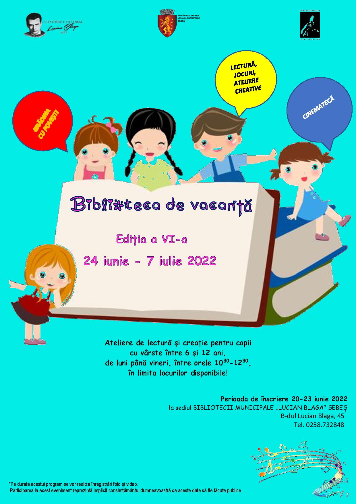 Înscrierile se fac la sediul Bibliotecii Municipale „Lucian Blaga” Sebeș,  bulevardul „Lucian Blaga”, numărul 45, telefon: 0258.732848, în perioada 20-23 iunie 2022. Numărul de locuri este limitat.