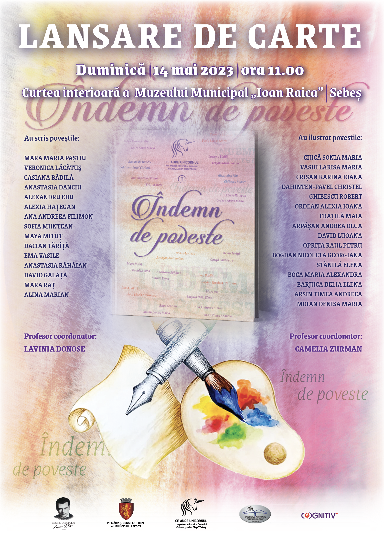 Duminică, 14 mai 2023, începând cu orele 11.00, vă invităm, cu bucurie, să ne fiți alături la lansarea cărții pentru copii Ce aude unicornul. Îndemn de poveste (volum colectiv), care va avea loc în grădina Muzeului Municipal „Ioan Raica” din Sebeş.