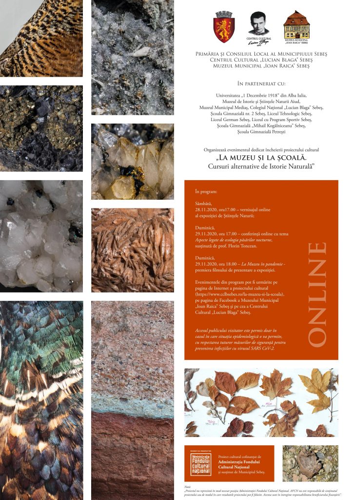 Sâmbătă, 28.11.2020, ora1700 – vernisajul expoziţiei de Științele Naturii;